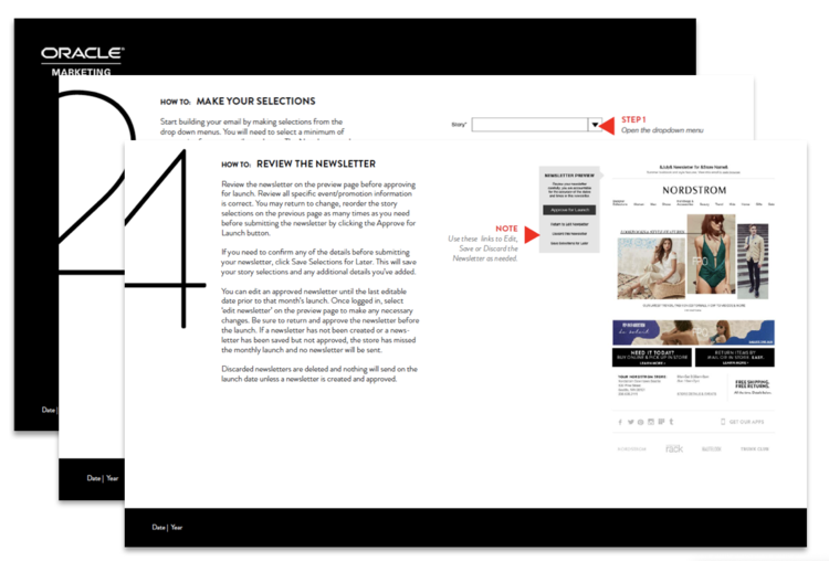 Bringing together teams from all over our company, we realized we could build a web-based tool to solve their problem. The new tool would grant limited access to store managers, using a supplied URL and password, to a preselected set of quality newsletter content. Each store could then select the most relevant content and build a newsletter for their store which would then launch on the predetermined date.